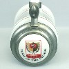 MLSAN49 - 1992 Miller Lite San Francisco 49ers lidded stein. This 6 3/8" lidded stein was made in China for CUI, Inc. Gold shield with SF Forty Niners, on the front. Gold colored N for National League, on both sides of stein. Raised Lite Beer on recessed part of lid. A miniature pewter football is the thumblift. Comes with a certificate of authenticity. Underneath reads: A Lite Collectors Stein for the Pro Sports Collection. Generic box.$38.00