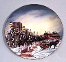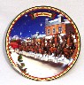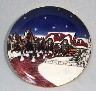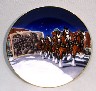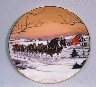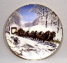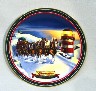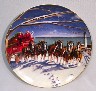 128151 - 2010 " Dashing Through The Snow " plate. The 22nd in the series of holiday plates. This 8 1/4" in diameter plate features the Clydesdales dashing through the snow past a snowed in barn with the mountain skyline in the background. Individually numbered. Generic brown box.OUT