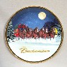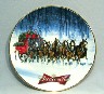 N9101 - 2005 " Holiday " plate. The 17th in the series of holiday plates. Artist Lonnie Busch depicts Budweiser's Team & Wagon as they travel through the snow, against a full moon lit starry sky. Plate is 8 1/4" in diameter. Individually numbered and comes with a certificate of authenticity. Boxed.$24.00