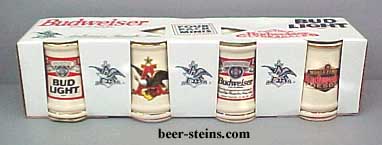N4573 --- Mini 4-Pack Mini steins - Features Budweiser �, Bud Light �,