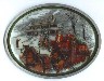 N5313 --- Made in 1995, this beautiful stained glass suncatcher is an (counting the leaded frame) 6 3/4" by 8 5/8" oval. Features the Clydesdales & Wagon in a wintry holiday setting. Very, very colorful. Secured by a leaded frame with chain for hanging. Made in the USA by Glassmasters of The Stained Glass Guild. Boxed. Brand new, never displayed condition. Comes with caring for your stained glass and history of stained glass as an ancient art.$58.00