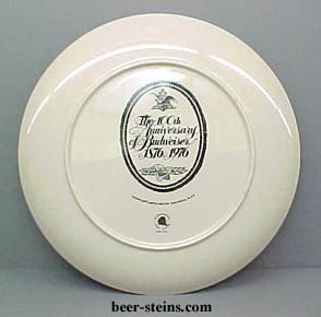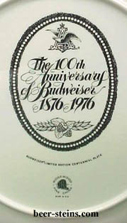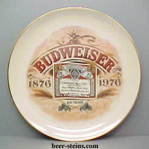 AB100 - 1976 Budweiser � 100 Years Anniversary plate. This large 10 5/8" in diameter plate was made in the USA by Ridgewood Fine China. Not boxed.$68.00