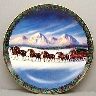 128151 - 2010 " Dashing Through The Snow " plate. The 22nd in the series of holiday plates. This 8 1/4" in diameter plate features the Clydesdales dashing through the snow past a snowed in barn with the mountain skyline in the background. Individually numbered. Generic brown box.OUT