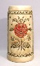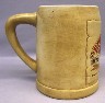 CS17-1 - Americana Staples stein. This 6 3/8" stein was made in Brazil by Ceramarte. These are like the Blue Delft 6 different designs, but done in a very light brown wash with pastel coloring. The zig zag pattern and the leaves of the flower are in a pastel light green shade and the center of the flower is a light red pastel color. Flowers on either side are in a light green and yellow pastel colors. Did not come boxed to my knowledge. (BEWARE THERE ARE REPAINTED OR PAINTED VERSIONS OF THIS SET! TOO MANY AREAS WITH ENHANCED COLORING! ALL THE STEINS IN THIS SET ARE LIGHT PASTEL IN COLORING LIKE THIS ONE!)OUT