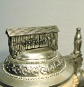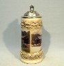 4447 - 1997 THE COVERED BRIDGE lidded stein. This special 9" lidded edition stein, made in Germany, has a minature pewter figurine of a covered bridge that is mounted to the top of the lid. Comes with a postcard size certificate of authenticity. Generic box.PRICE: $75.00