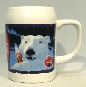 COKE 3 - 1995 POLAR BEAR with SANTA hofbrau stein. This 5 1/4" stein features the Coca-Cola's Polar Bear with Santa. Did not come boxed.PRICE: $16.00