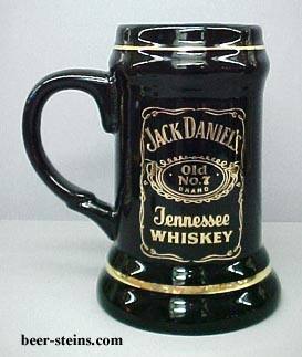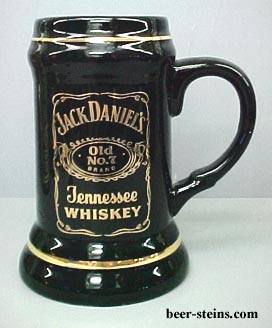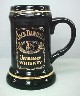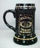 8311 - Jack Daniel's stoneware stein. This heavy 6 1/2" tall black stein was made in China. Featured is a gold label of the famous Jack Daniel's Old No. 7 Brand Tennessee Whiskey, on the front and back. Generic box.