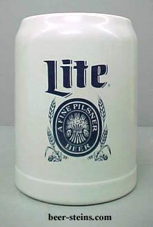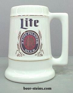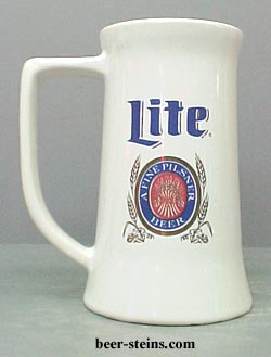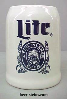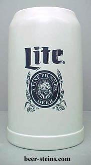 M706 - 1970's Miller Lite Label 1L stein. This 7 1/4" stein was made in Brazil by Ceramarte. Features a Miller Lite label on this 1L stein. Did not come boxed.OUT