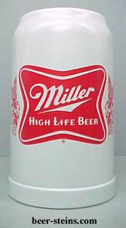 M713B - 1970's Miller High Life Label stein. Miller in script with High Life, below. This heavy 5 3/4" stein was made in the USA by Concepts Unlimted when they were in NJ. Did not come boxed.