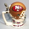 97732 - 1997 SAN FRANCISCO 49ers Football helmet lidded stein. Super Bowl wins featured around the bottom rear of the stein are: Super Bowl XVI 49ers 26 - Bengals 21, Super Bowl XIX 49ers 38 - Dolphins 16, Super Bowl XXIII 49ers 20 - Bengals 16, Super Bowl XXIV 49ers 55 - Broncos 10 and Super Bowl XXIX 49ers 49 - Chargers 26.$55.00