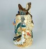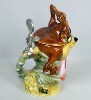 --------------" Be ve-wy ve-wy quiet ", Elmer Fudd seems to say. Elmer Fudd is basically a lovable guy who has the misfortune to think he's a hunter. Bugs Bunny and Daffy Duck know better and when put to the test, Elmer is fair game for that " wascally wabbit " and that " despicable duck ". The stein captures Elmer in a classic pose during hunting season. He is seen peering through the bushes blasting away at Daffy while Daffy tries to convince Elmer that it is rabbit season and not duck season. Bugs tries to convince Elmer that it is duck season and not rabbit season. As always, Bugs Bunny escapes unscathed. Made in Germany, this lidded porcelain stein is hand painted. Individually numbered. Generic box. (Discontinued)OUT